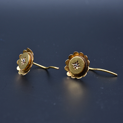 花をモチーフとした、ヴィクトリアン期のゴールドピアスです。